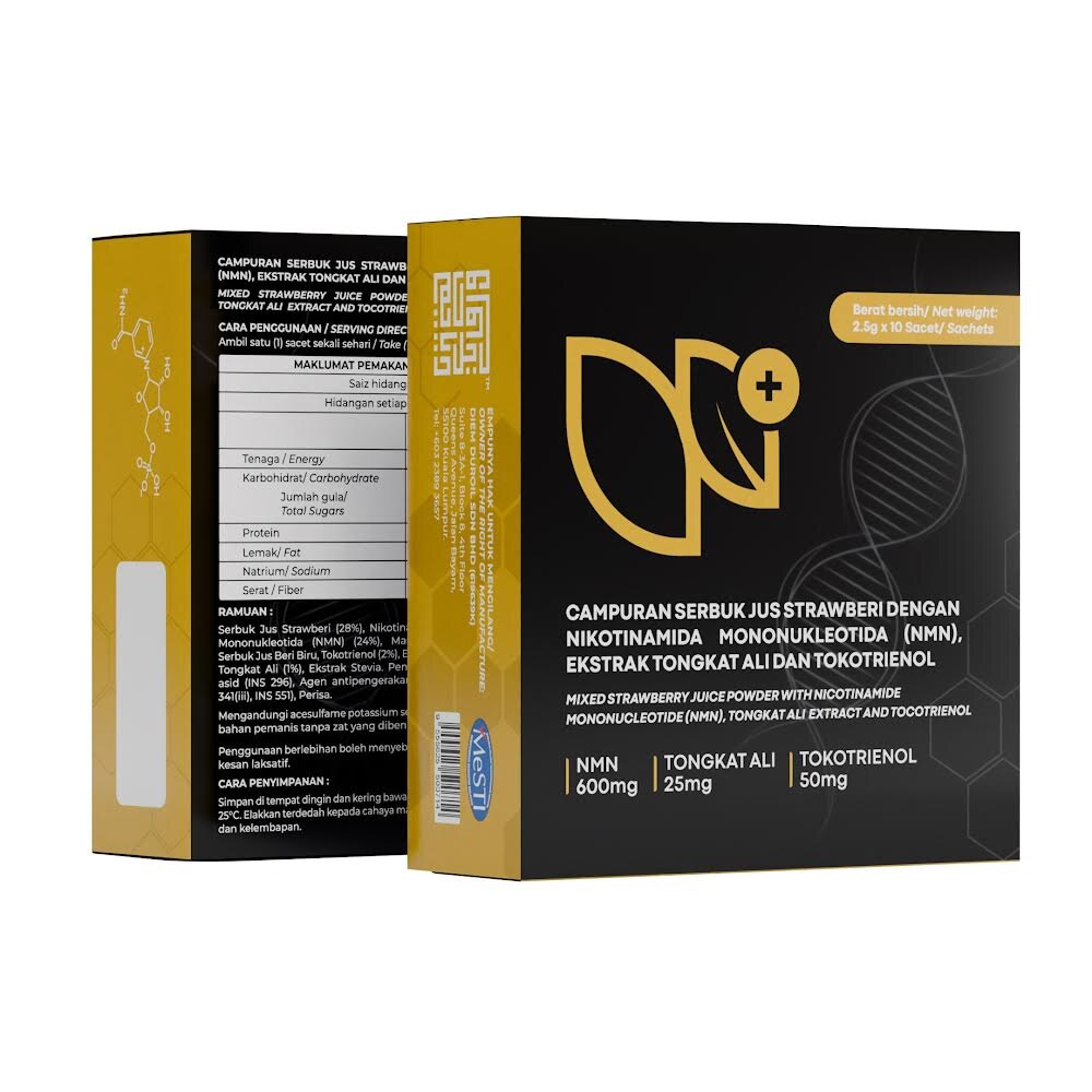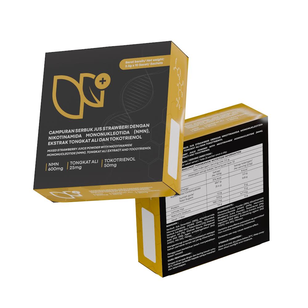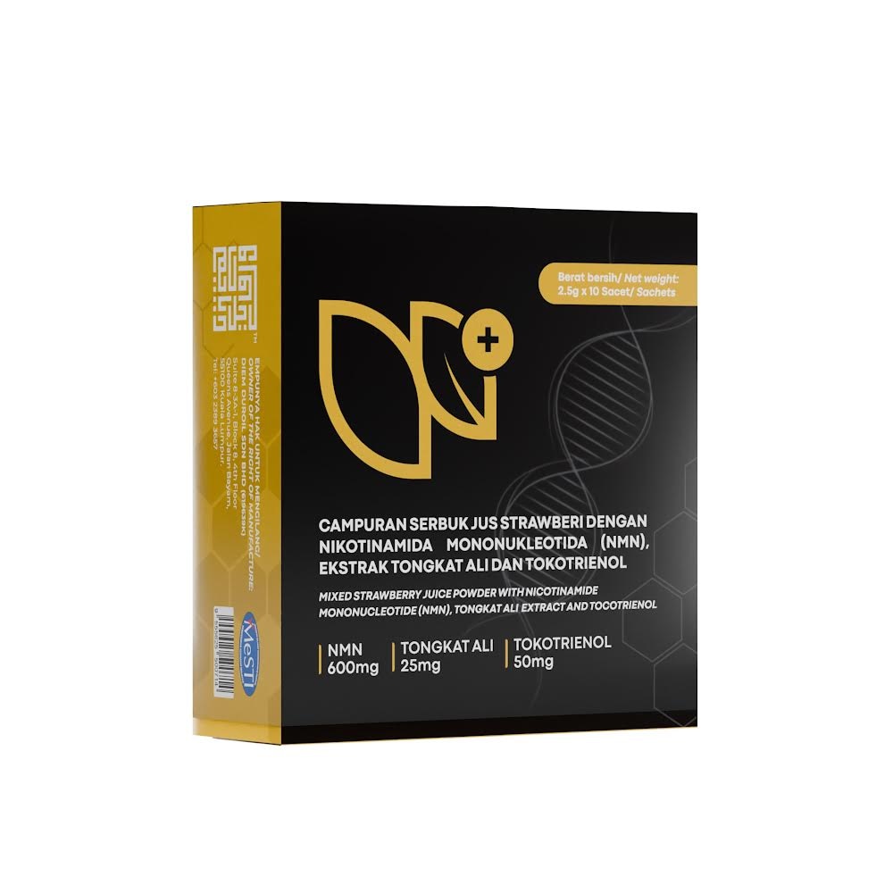 NMN (Nicotinamide Mononucleotide) Boosts NAD+ Levels: Enhances cellular energy production and supports metabolic processes Supports Healthy Aging: Improves markers of ageing, such as muscle strength and cognitive function Enhances Cardiovascular Health: Promotes better blood flow and vascular function. Tongkat Ali (Eurycoma longifolia) Increases Testosterone Levels: Supports muscle mass, strength, and overall vitality Reduces Stress: Has adaptogenic properties that help manage stress and improve mood Improves Male Fertility: Enhances sperm quality and increases fertility. Tocotrienol Brain Health: Provides neuroprotective effects, supporting cognitive function Heart Health: Reduces cholesterol levels and prevents heart-damaging inflammation Antioxidant Properties: Offers powerful antioxidant activity, protecting cells from damage Combined Benefits Enhanced Energy and Vitality: NMN boosts cellular energy, while Tongkat Ali supports testosterone levels, and Tocotrienol provides antioxidant protection, leading to overall improved vitality. Comprehensive Health Support: The combination supports various aspects of health, including cardiovascular, cognitive, and metabolic functions. Stress and Mood Management: Tongkat Ali’s adaptogenic properties, combined with the cellular energy boost from NMN and the antioxidant support from Tocotrienol, help manage stress and improve mood.